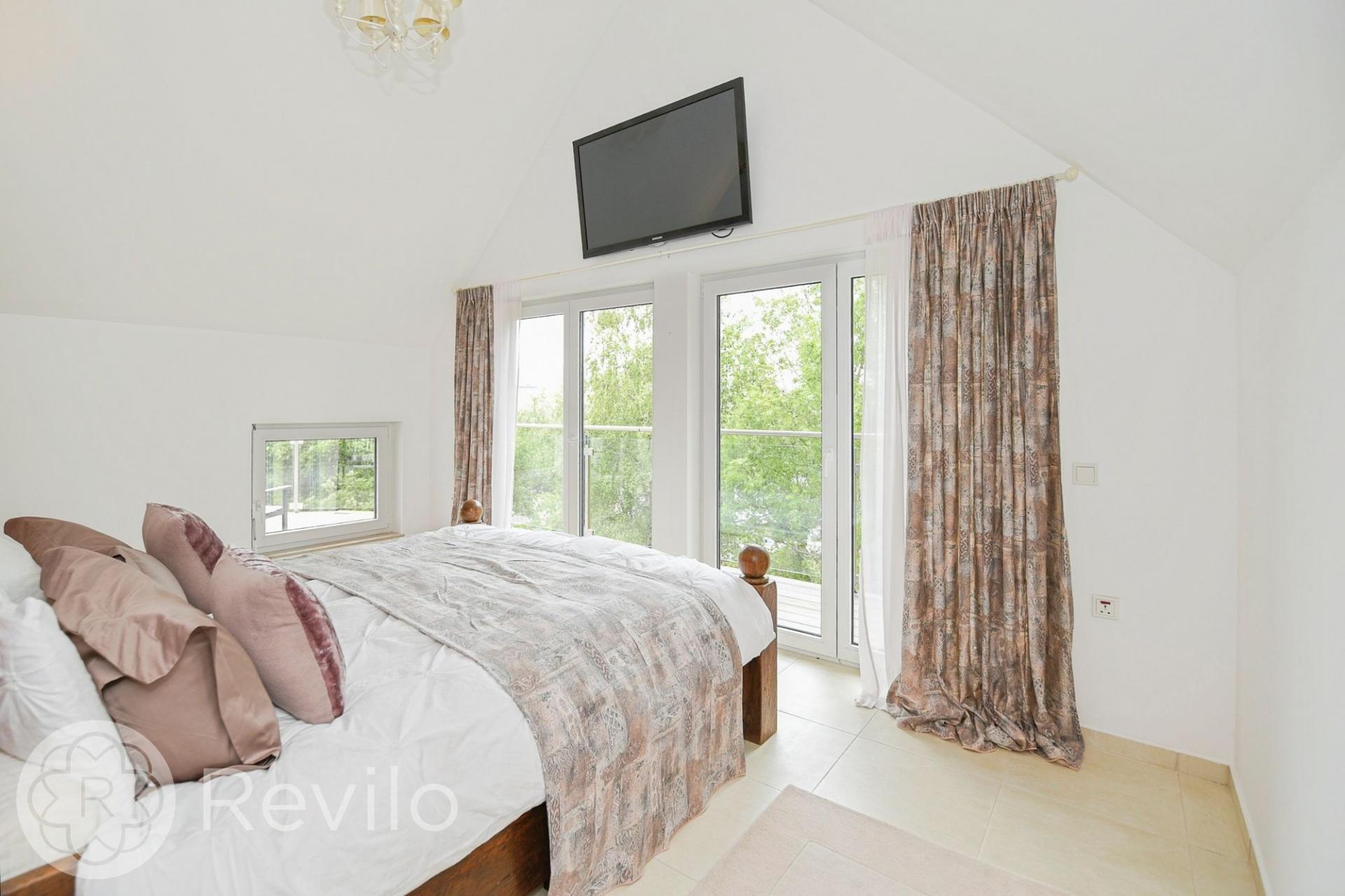 The outdoor space is equally impressive, with extensive lawns, wrap-around terraces, and balconies featuring glass balustrades that offer panoramic views of the surroundings. The property has been thoughtfully designed to make the most of its picturesque setting and natural light, with extensive and well-designed glazing throughout.