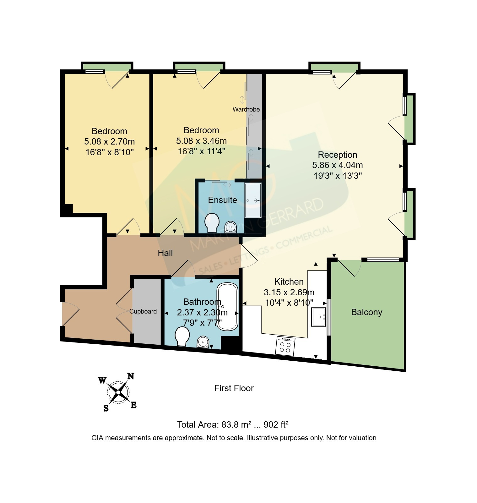 This thoughtfully designed home offers two generous double bedrooms, two bathrooms, and a spacious open-plan living area that leads onto a private balcony.