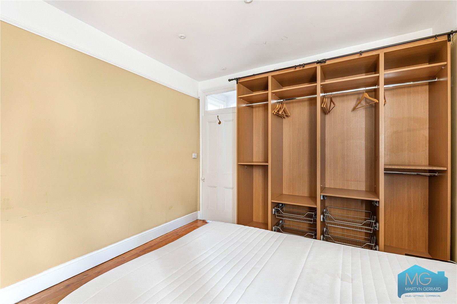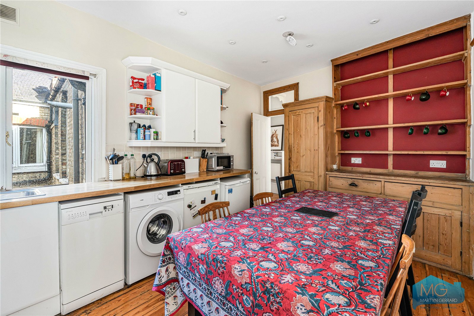 All three bedrooms are well-proportioned, complemented by a dedicated walk-in wardrobe which adds a practical and desirable touch. Original wooden flooring runs throughout, enhancing the warmth and charm of the home while tying the space together beautifully.