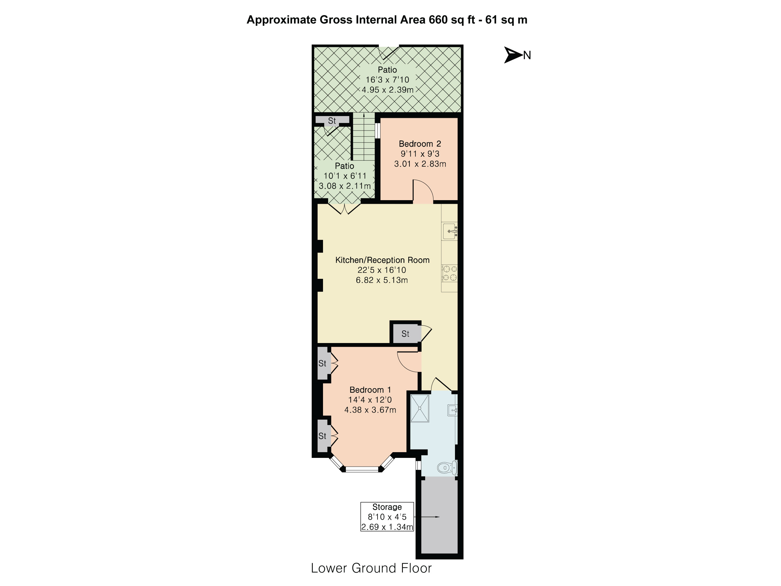 - Two bedrooms