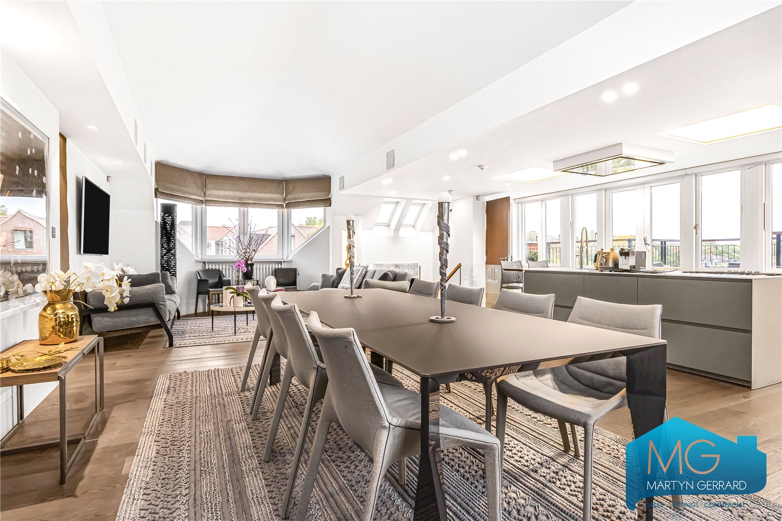 A chain free duplex high specification penthouse offering panoramic views of London’s skyline from private Southerly facing roof terrace.